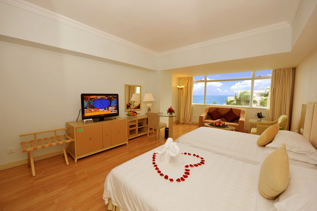 豪華海景雙床房 面積:39-45平方米 樓層:2-8層 海景:180度海景 陽臺:觀海陽臺 雙標(biāo):1.3*2米 浴缸:大部分房間有 寬帶:免費