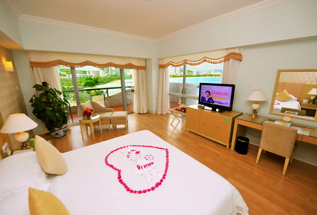 豪華海景大床房 面積:39-45 平方米 樓層:2-8層 海景:180度海景 陽臺:觀海陽臺 大床:1.8*2米 浴缸:大部分房間有 寬帶:免費