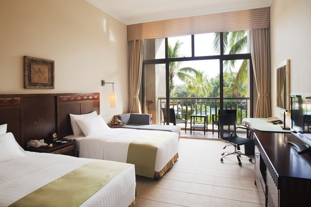豪華泳池房 面積:46平米 樓層:1-2層 海景:無 陽臺(tái) 有 大床:2*2米 雙標(biāo):1.2*2米 浴缸:部分房間有 寬帶:免費(fèi)