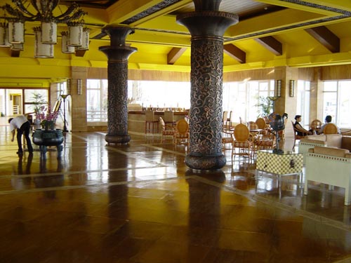 海南新國賓館是海南航空集團和?谑姓腺Y興建,由海航酒店(集團)有限公司管理,以接待國家元首,國賓,各類國際國內(nèi)組織主要領(lǐng)導(dǎo)人,省市政界重要貴賓和國際,國內(nèi)工商名流為主,是集客房、餐飲、休閑娛樂、會晤場所為一體的生態(tài)化,國際化的多功能濱海溫泉休閑度假酒店。 賓館位于?谑袨I海西路,映襯于藍(lán)天碧水之間,擁有二公里長的優(yōu)美海岸線,是西海岸帶狀公園的重要組成部分,建筑設(shè)計中西結(jié)合,裝修風(fēng)格古今貫通,外環(huán)境將歐式皇家花園和中式山水園林,日式山水溫泉有機的融和在一起,搭配新奇的熱帶植物景點,形成了獨特的具有海濱特色的熱帶風(fēng)情園林。 賓館營造了一個盡顯尊容風(fēng)范的世界:富麗、典雅,共擁有風(fēng)格迥異的豪華海景沙龍房、豪華海景日式房、阿拉丁套房、富士山套房、夢幻套房、法蘭西套房、歐式套房、浪漫蜜月套房以及氣派豪華的總統(tǒng)套房共178間,盡顯異域風(fēng)情。 酒店擁有五個中式、西式、日式餐廳及海邊土耳其燒烤,可為賓客提供來自世界各地的美味佳肴;精心設(shè)計的超變化全海景無柱型的會議廳、金色大廳配有國際先進的六聲道同聲傳譯系統(tǒng)及一流的會議設(shè)備,可同時容納500人開會。設(shè)施齊備的海上及沙灘娛樂項目、日式鄉(xiāng)村溫泉,古埃及桑拿浴室,泰式溫泉陽光SAP,電影院、網(wǎng)球場、兩個風(fēng)格不同的溫泉泳池等,會讓賓客置身于度假的天堂,流連忘返。